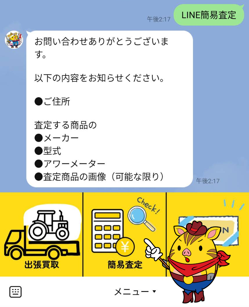 そんなギモンをかんたんに解決してくれるのが、農機具市番館のLINE簡易査定サービス!